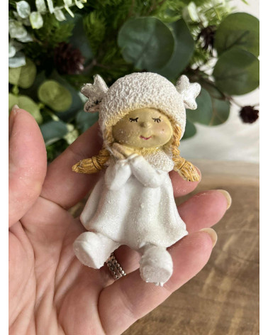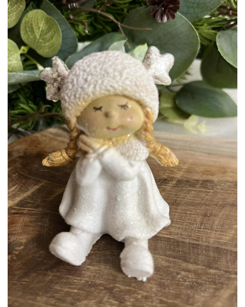 Dievčatko v čiapke v bielom, dievčatko sedí, dá sa doobjednať chlapček. Materiál: polyrezin.