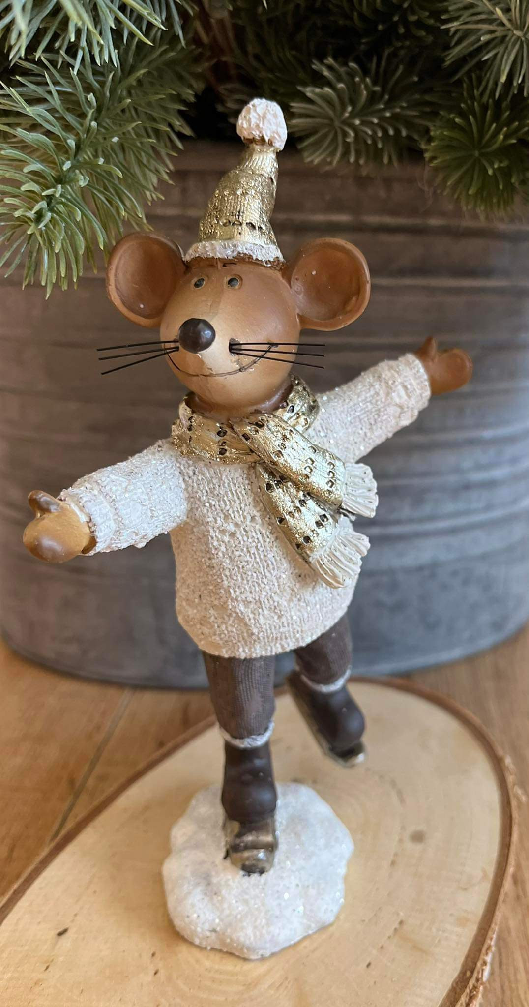 Myšiak v čiapke, so šálom v tanečnej póze na korčuliach. Do párika sa dá k nemu doobjednať aj myška.