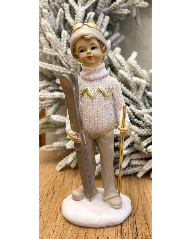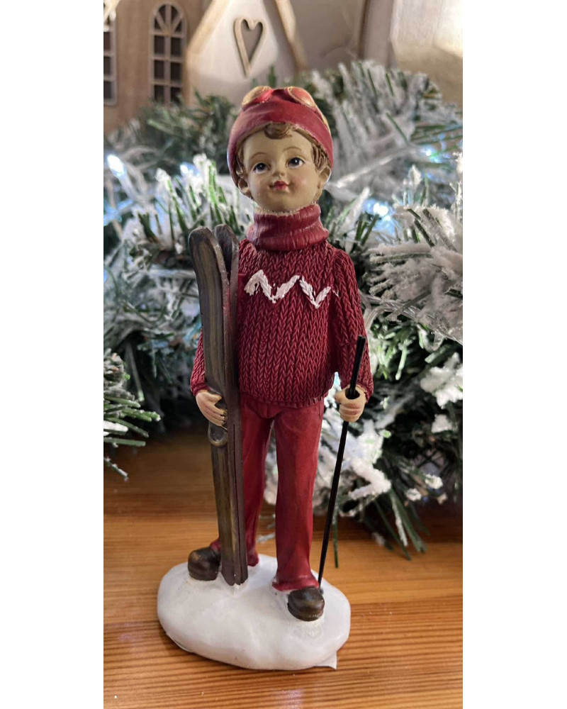 Soška pekného lyžiara v červenej alebo v maslovo béžovej farbe.