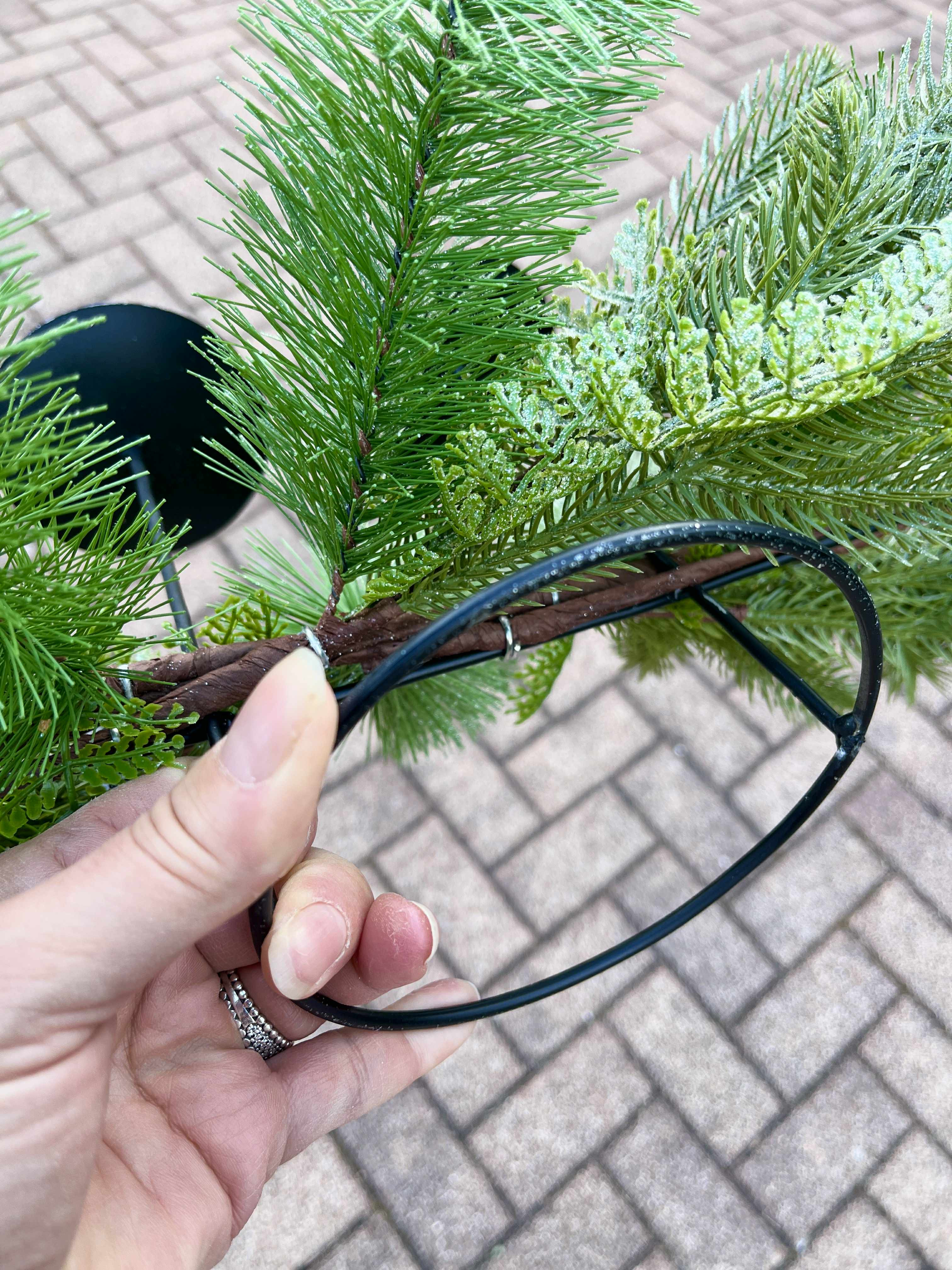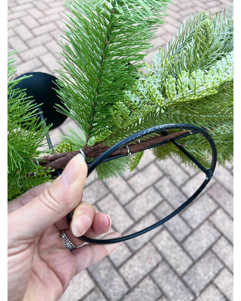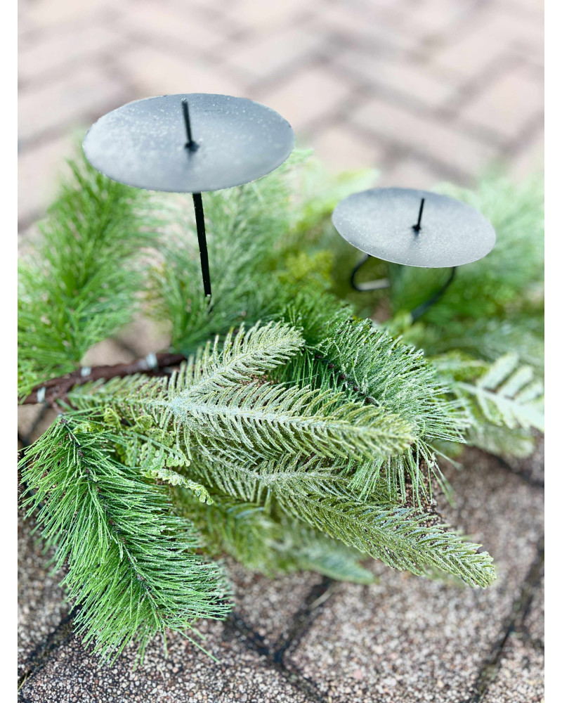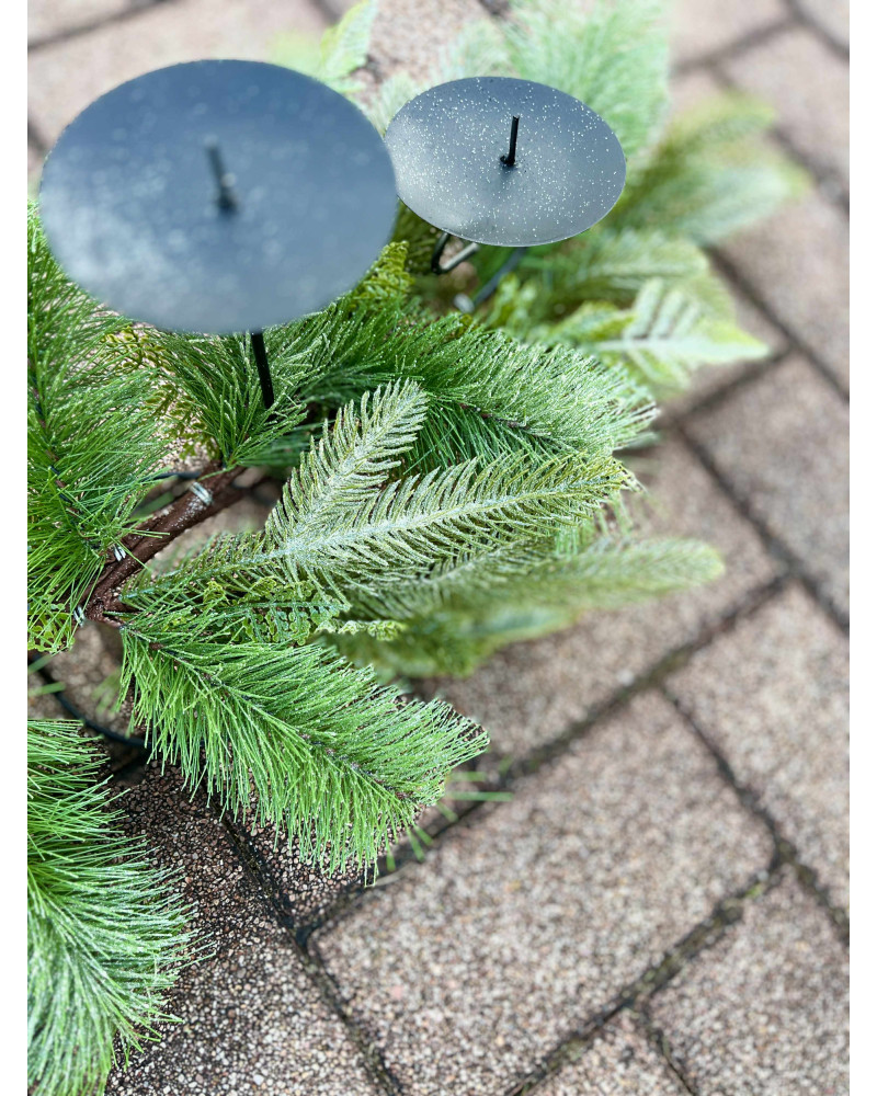 Tento veľký základ má kovovú konštrukciu doplnenú krásnou čečinou, štyri kovové bodce, perfektný základ na výrobu krásneho veľkého adventného svietnika.