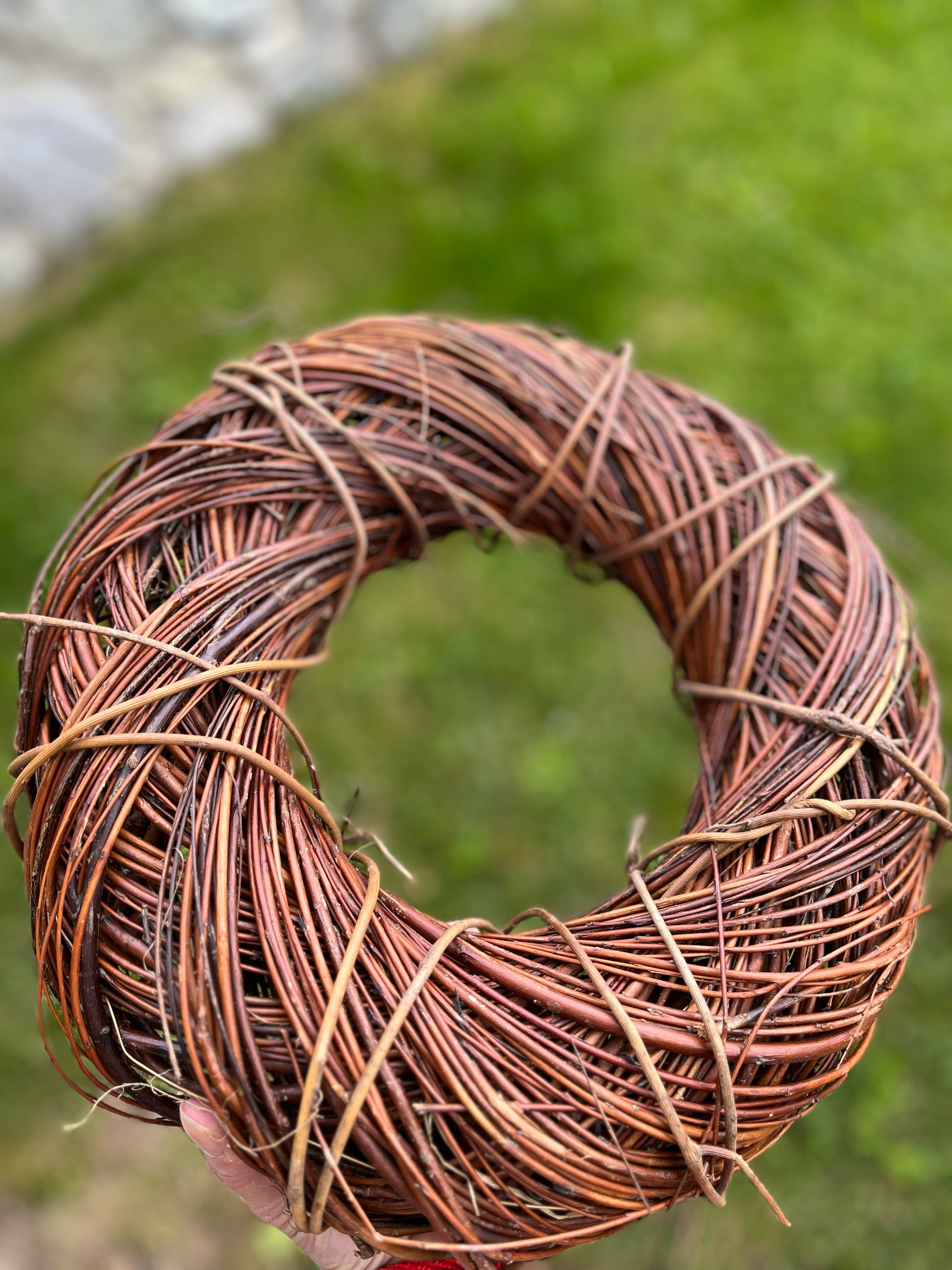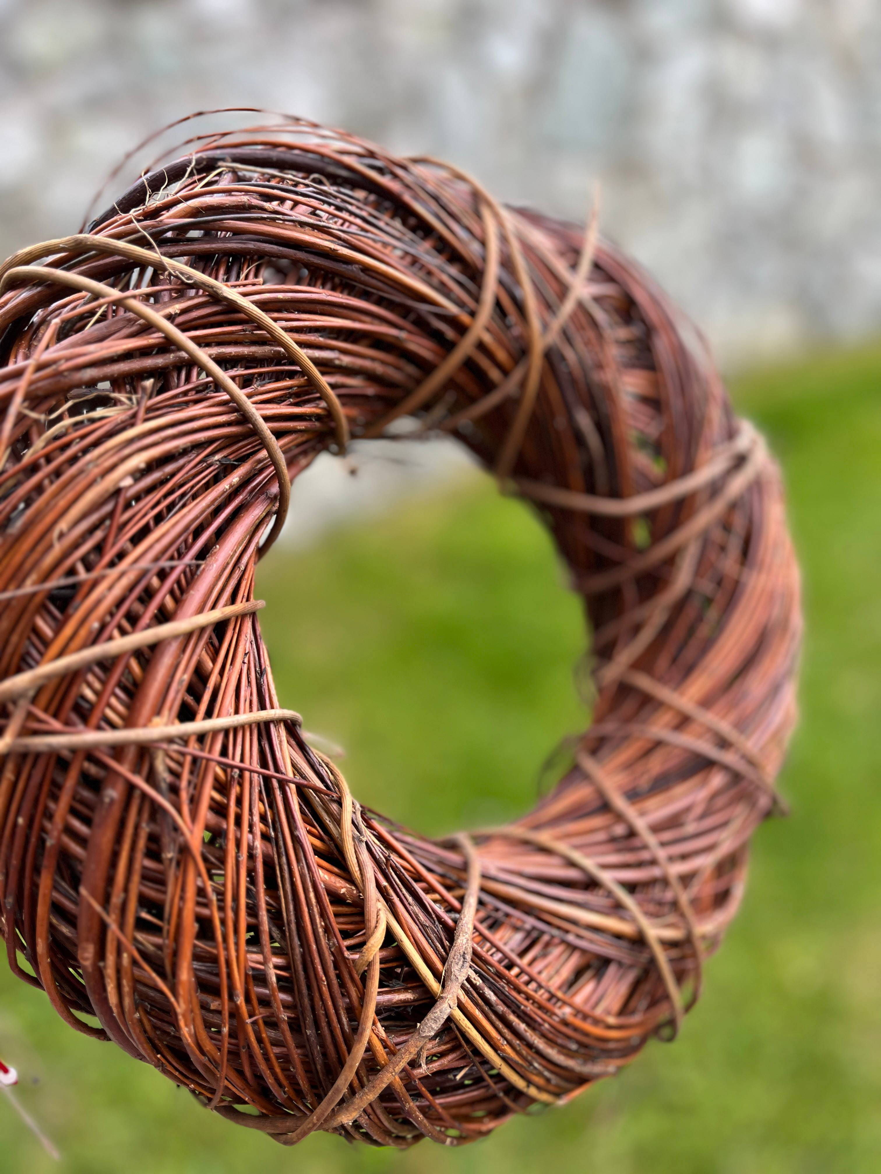 Nádherný prútený hrubÿ veniec v hnedej farbe. Nádherný je aj samostatne aj na ďalšie zdobenie.