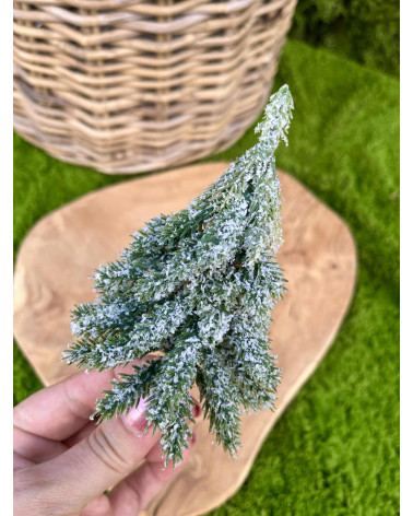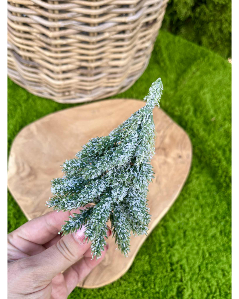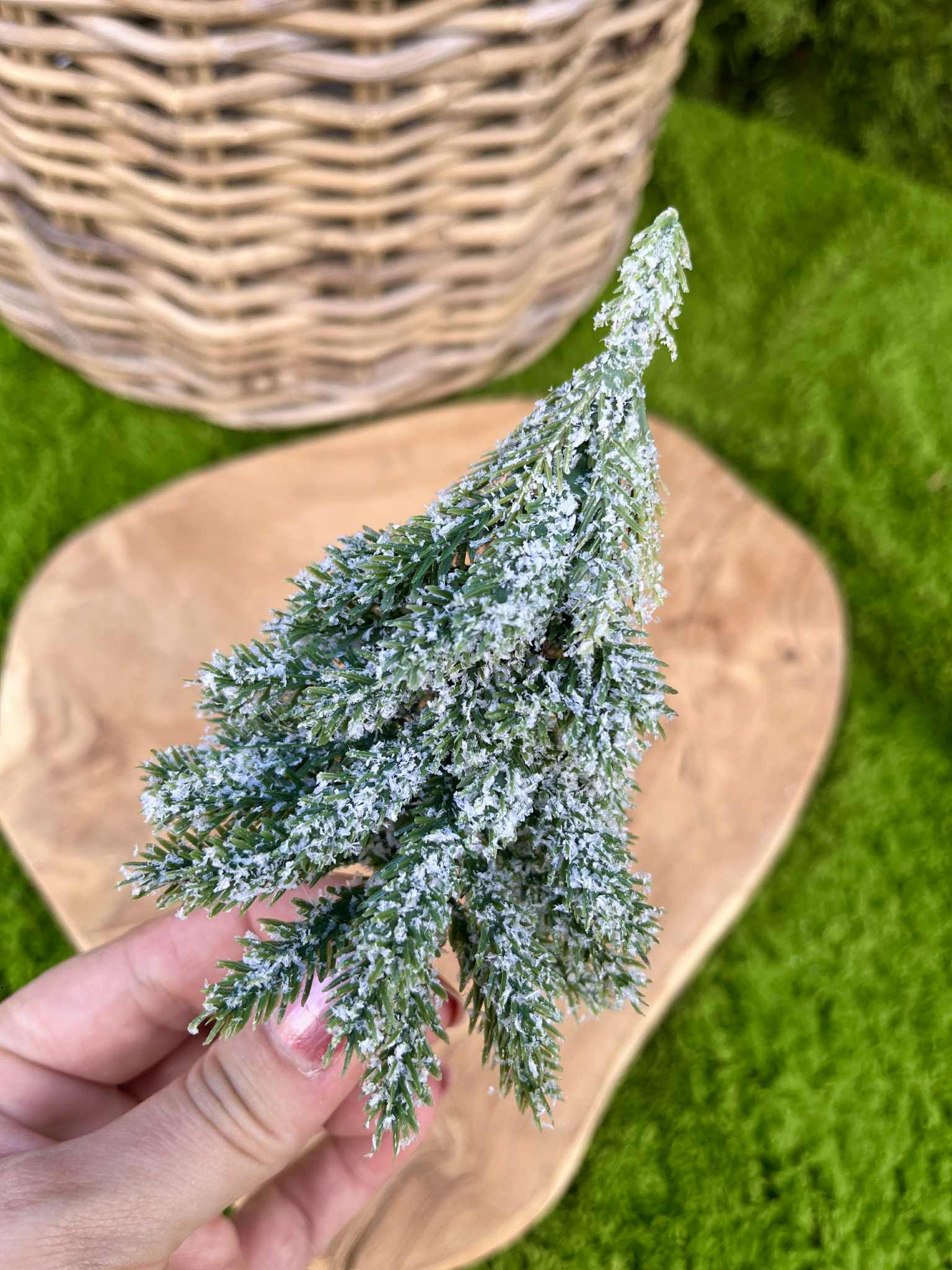 Zasnežený stromček na drotiku, výborný do zimných aranžmánov a vencov.