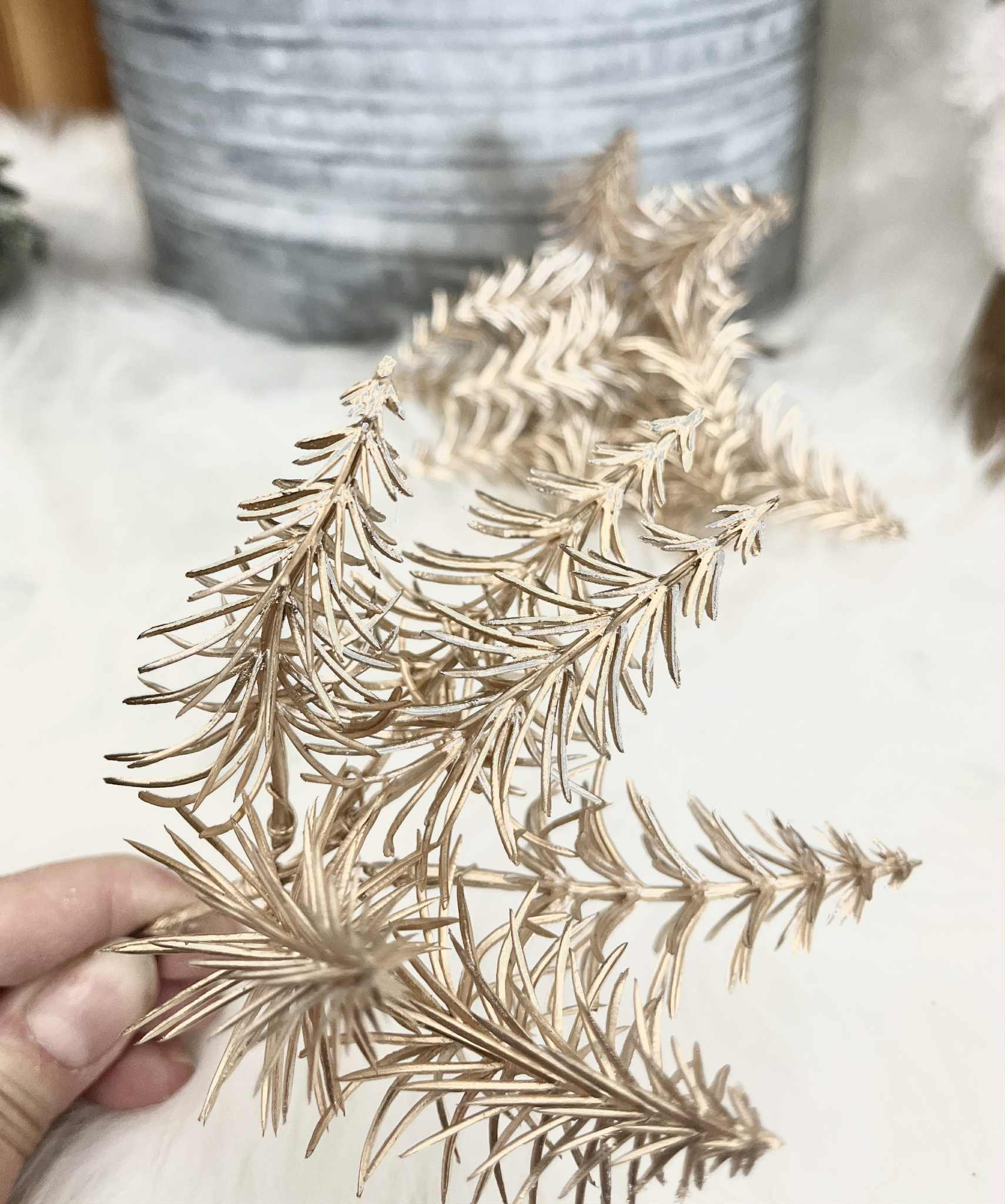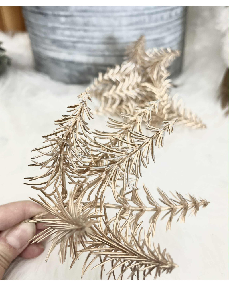 Zápich drobných stromčekov na drôtiku v šampanskej farbe.