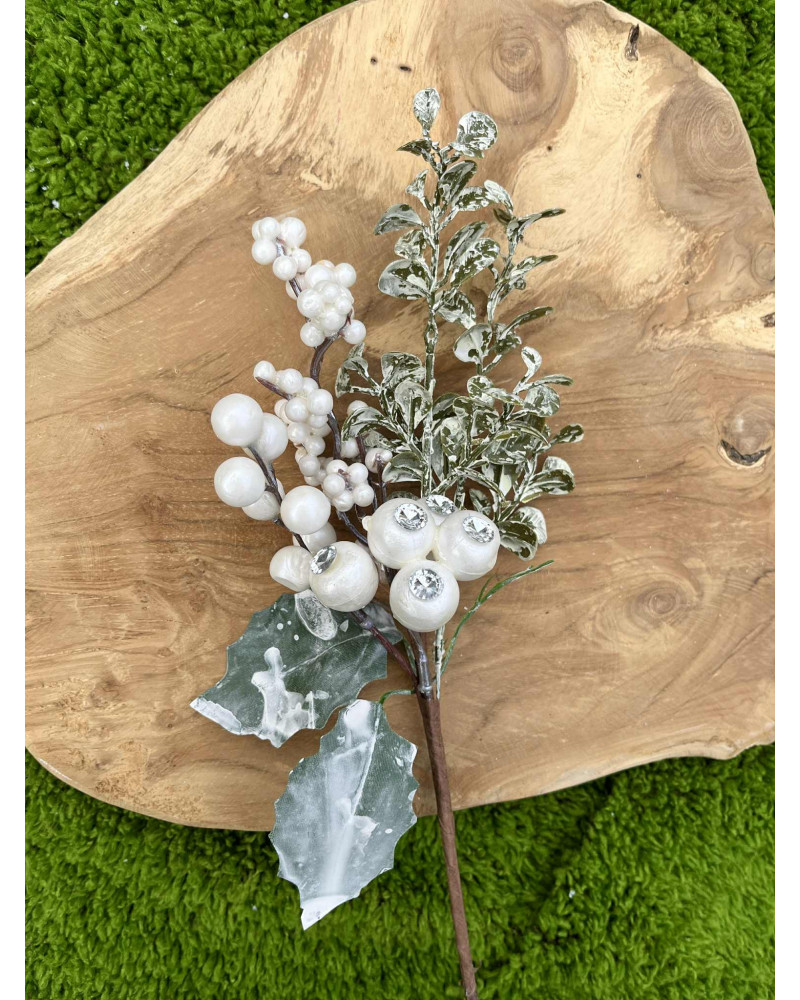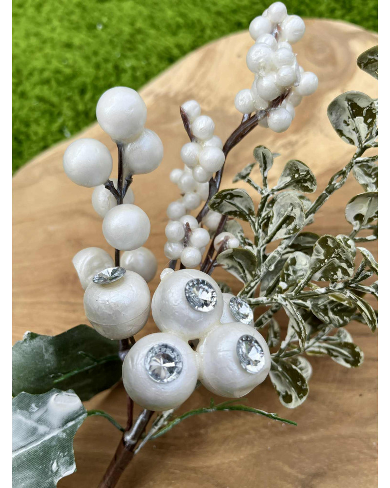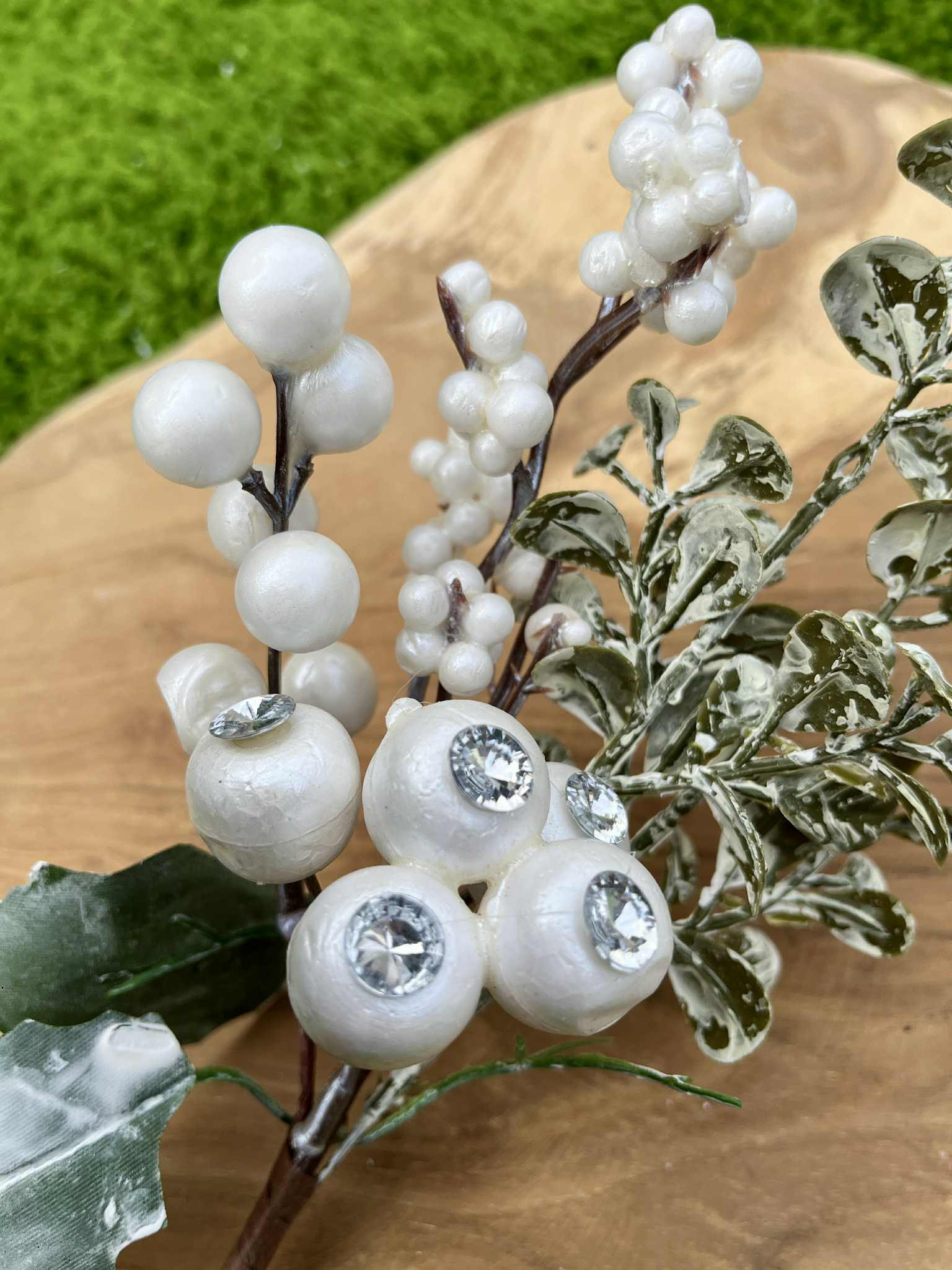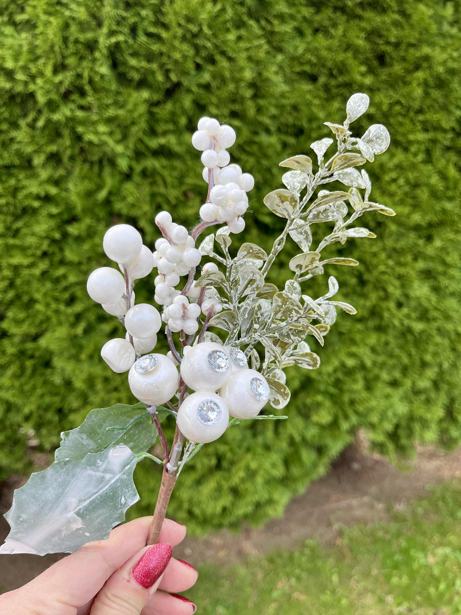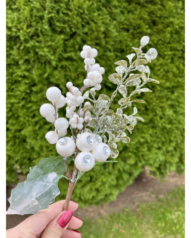 Zimný zápich s bielymi šípkami a s bielymi bobuľkami, so zamrznutým krušpánom.