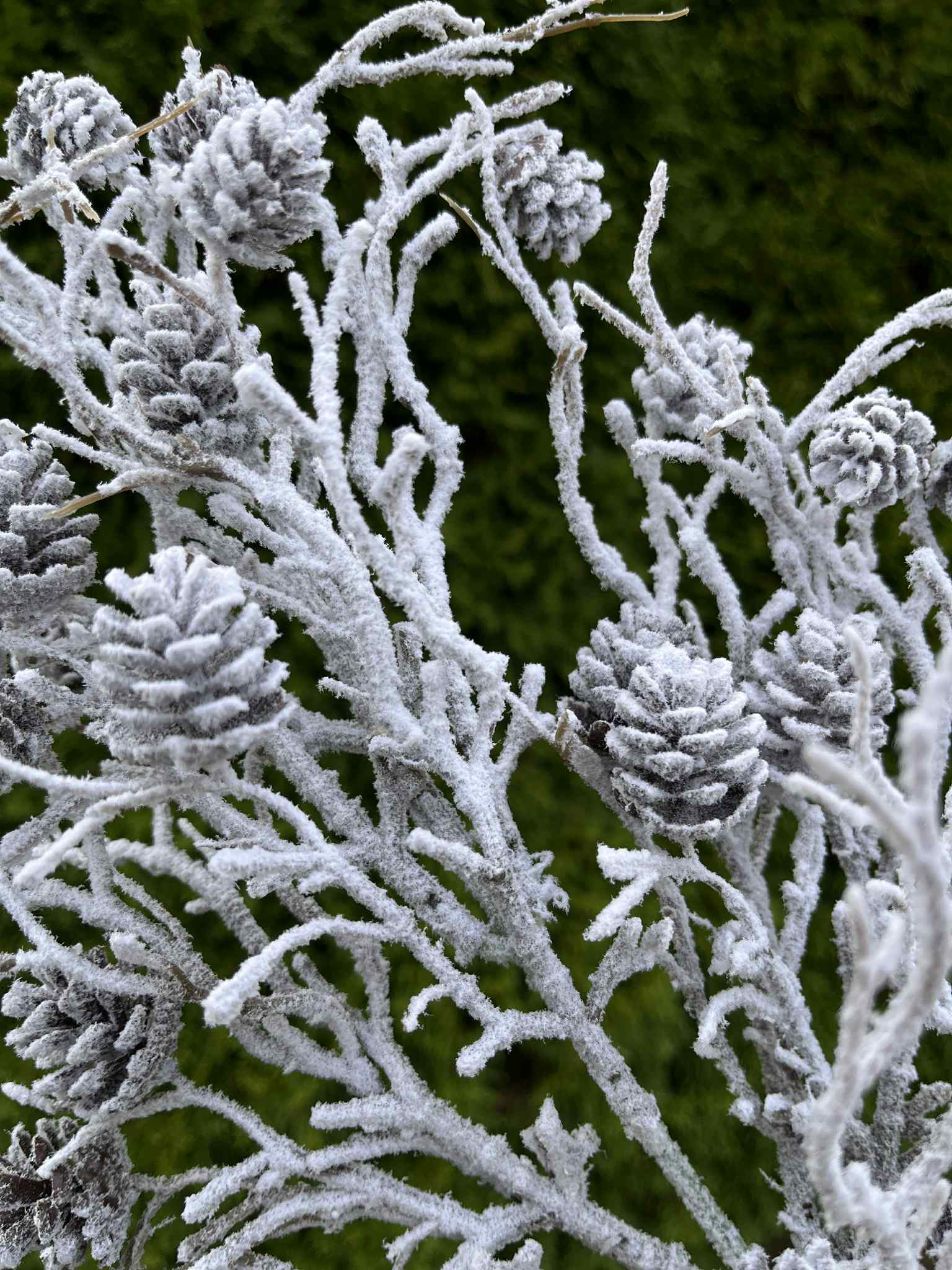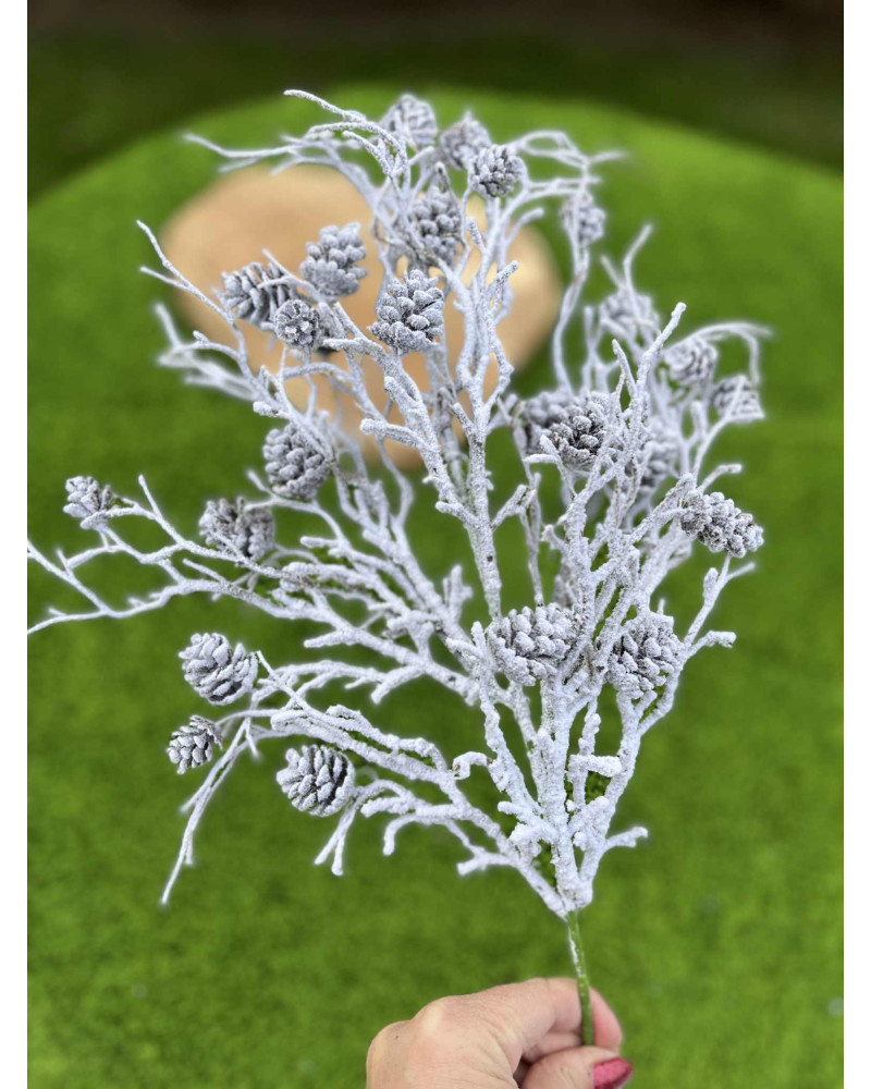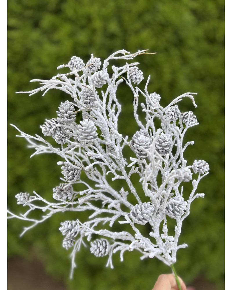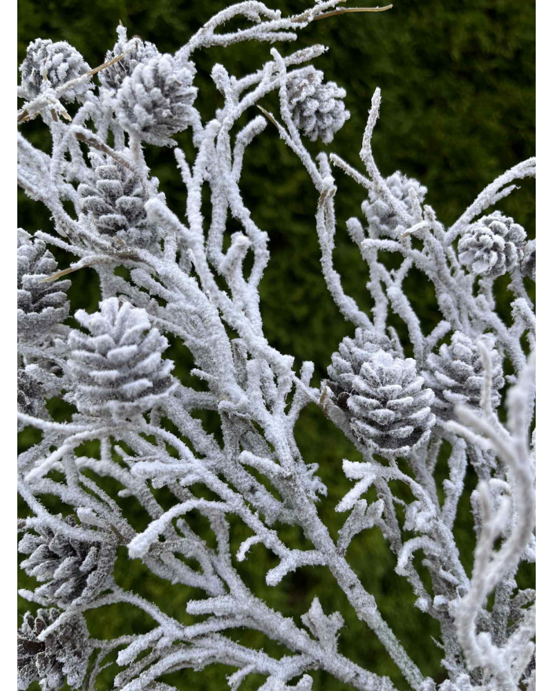 Nádherne urobený umelý konár so šiškami zasnežený, využitie je skutočne všestranné.