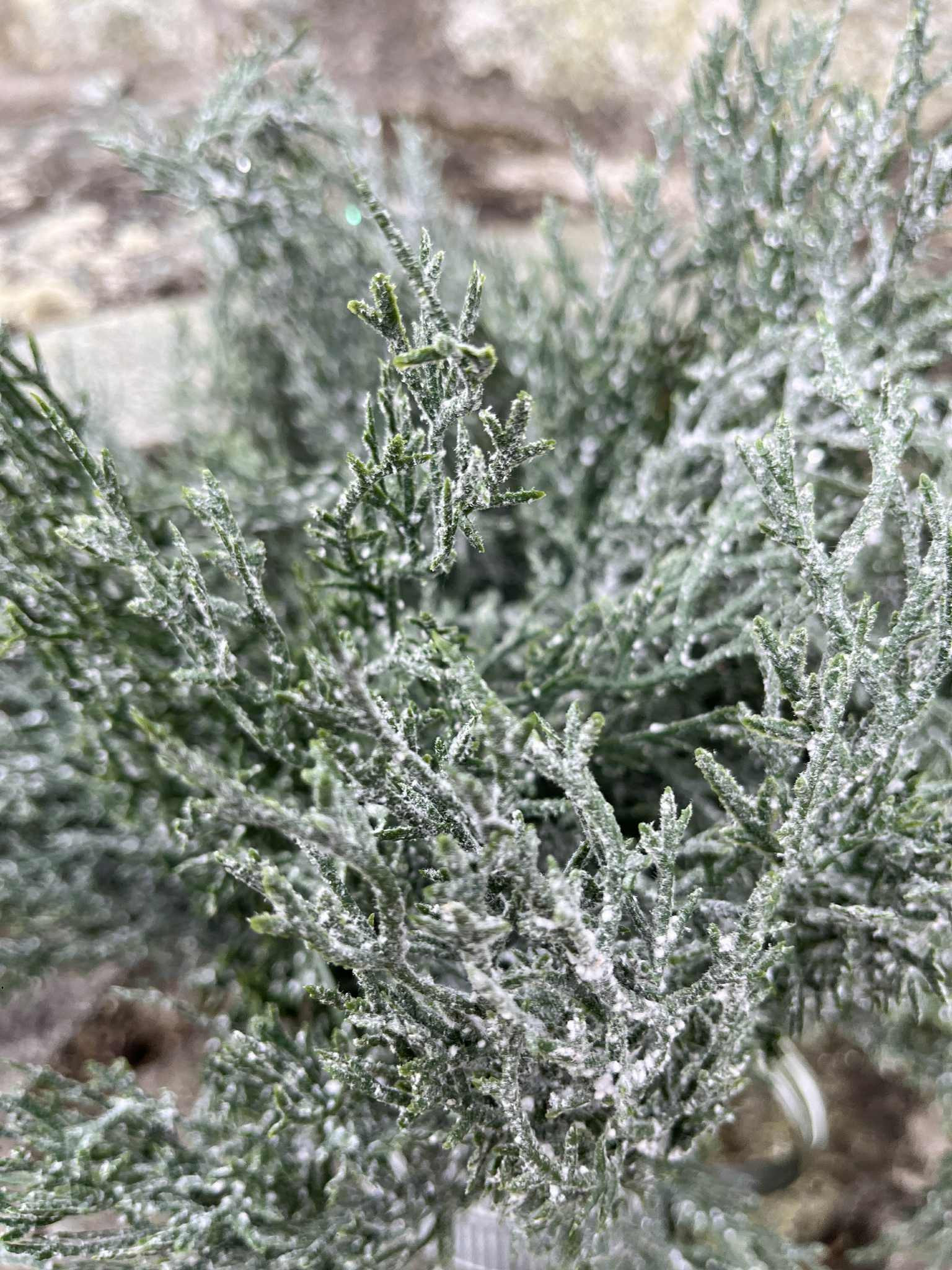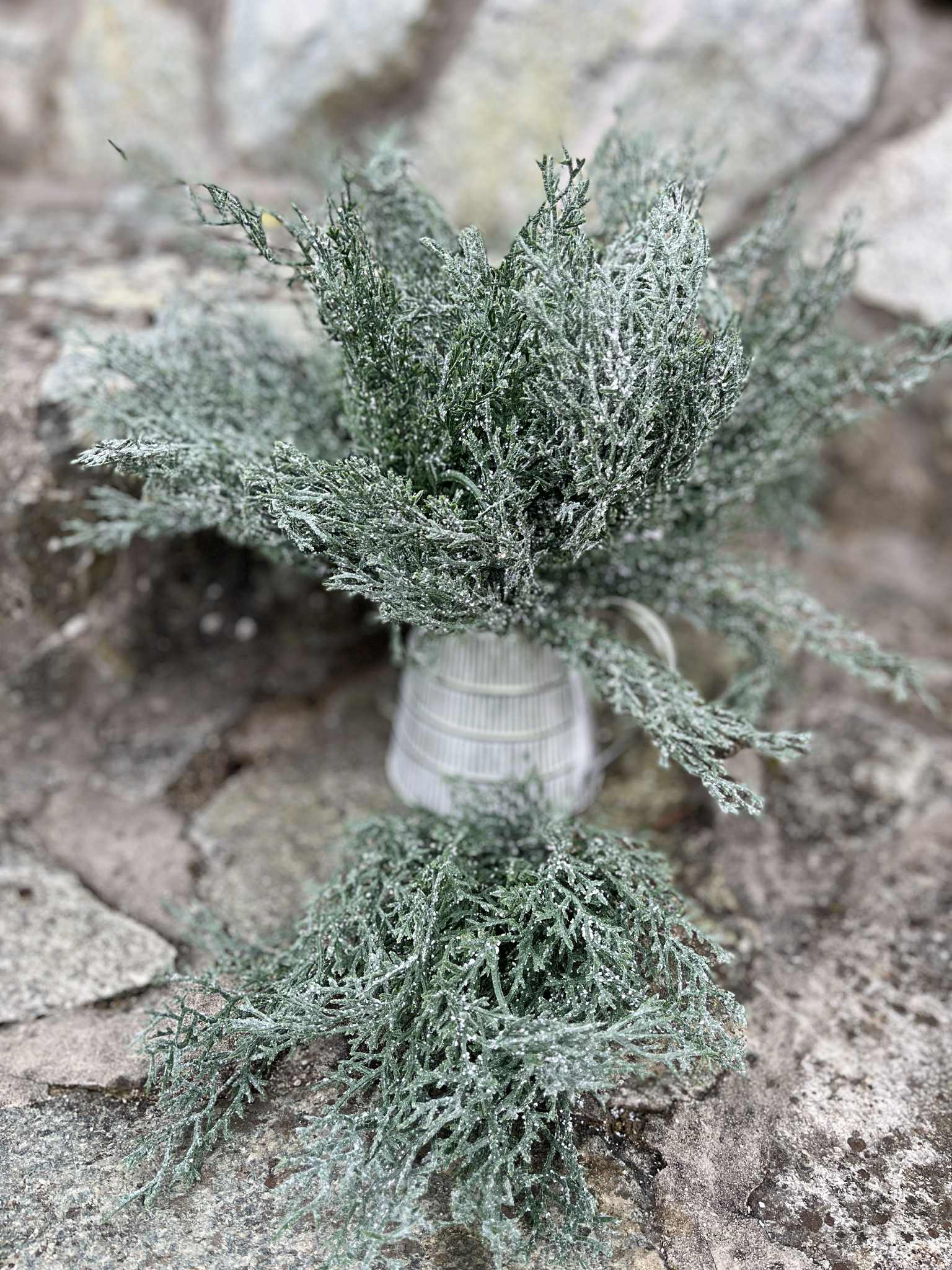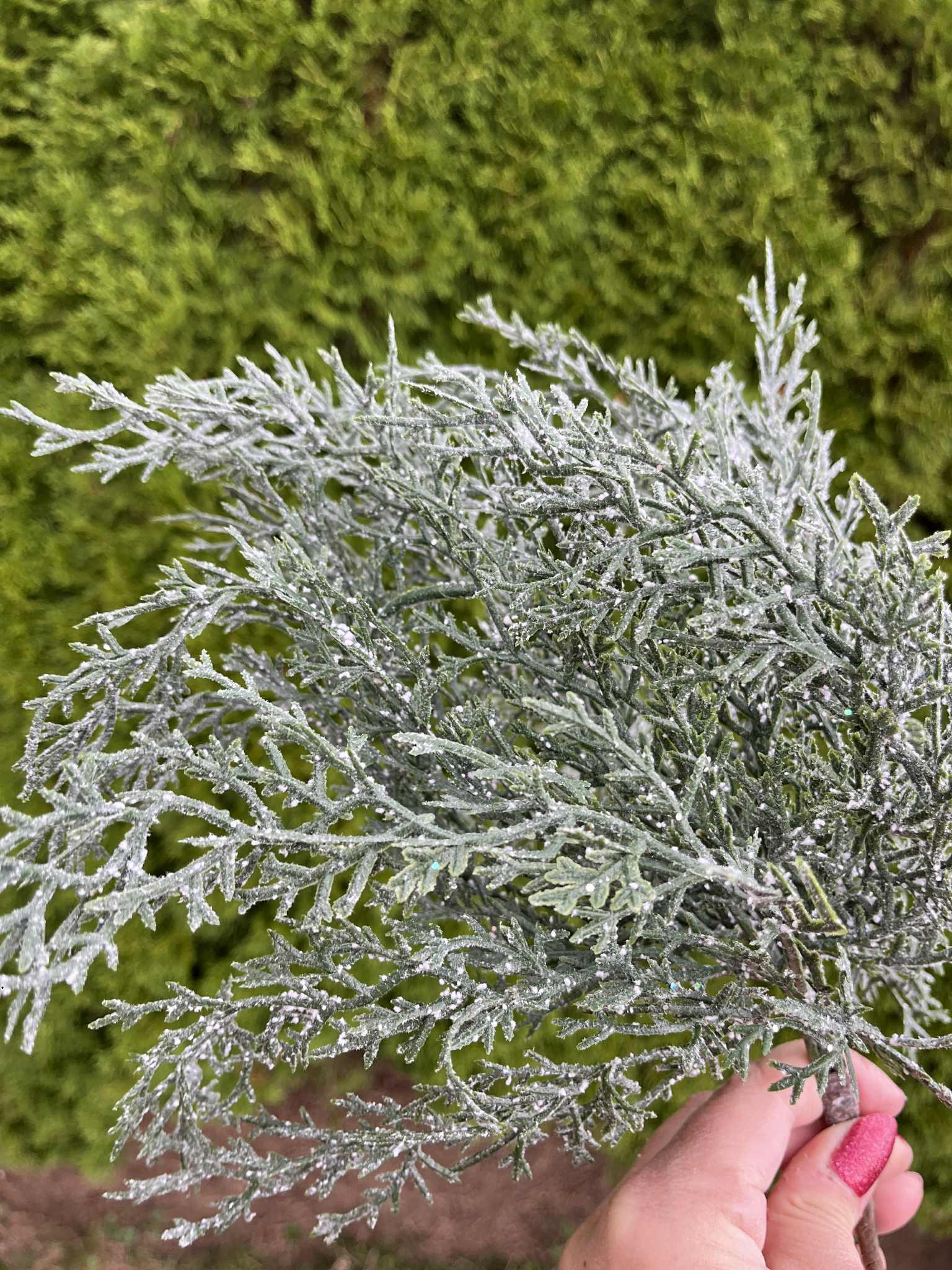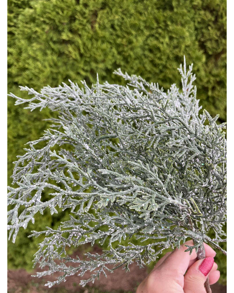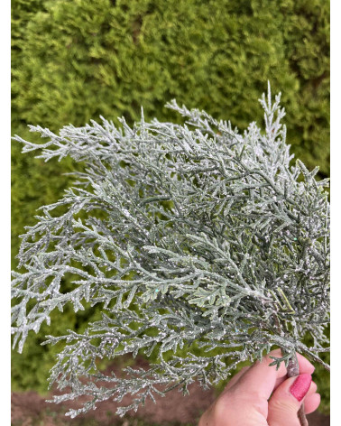Trs zelenej jemne zasneženej tuje, krásny do kombinácie s rôznymi odtieňmi čečiny, ale aj na rozstrihanie na použitie do dekorácii.