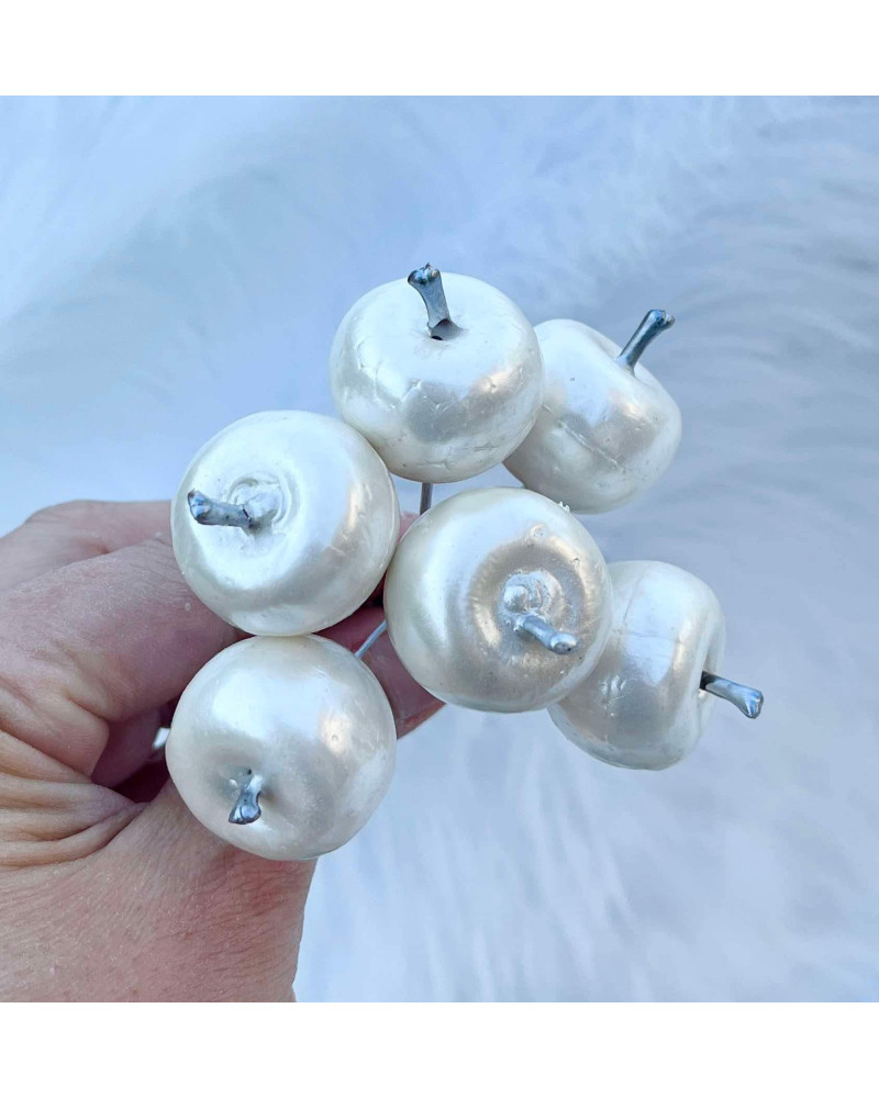 Biele perleťové jabĺčka na výrobu dekorácií.