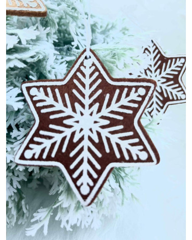 Sada štyroch plyšových medovníkov v tvare hviezdičky, 2 sú tmavšie, 2 sú svetlejšie.