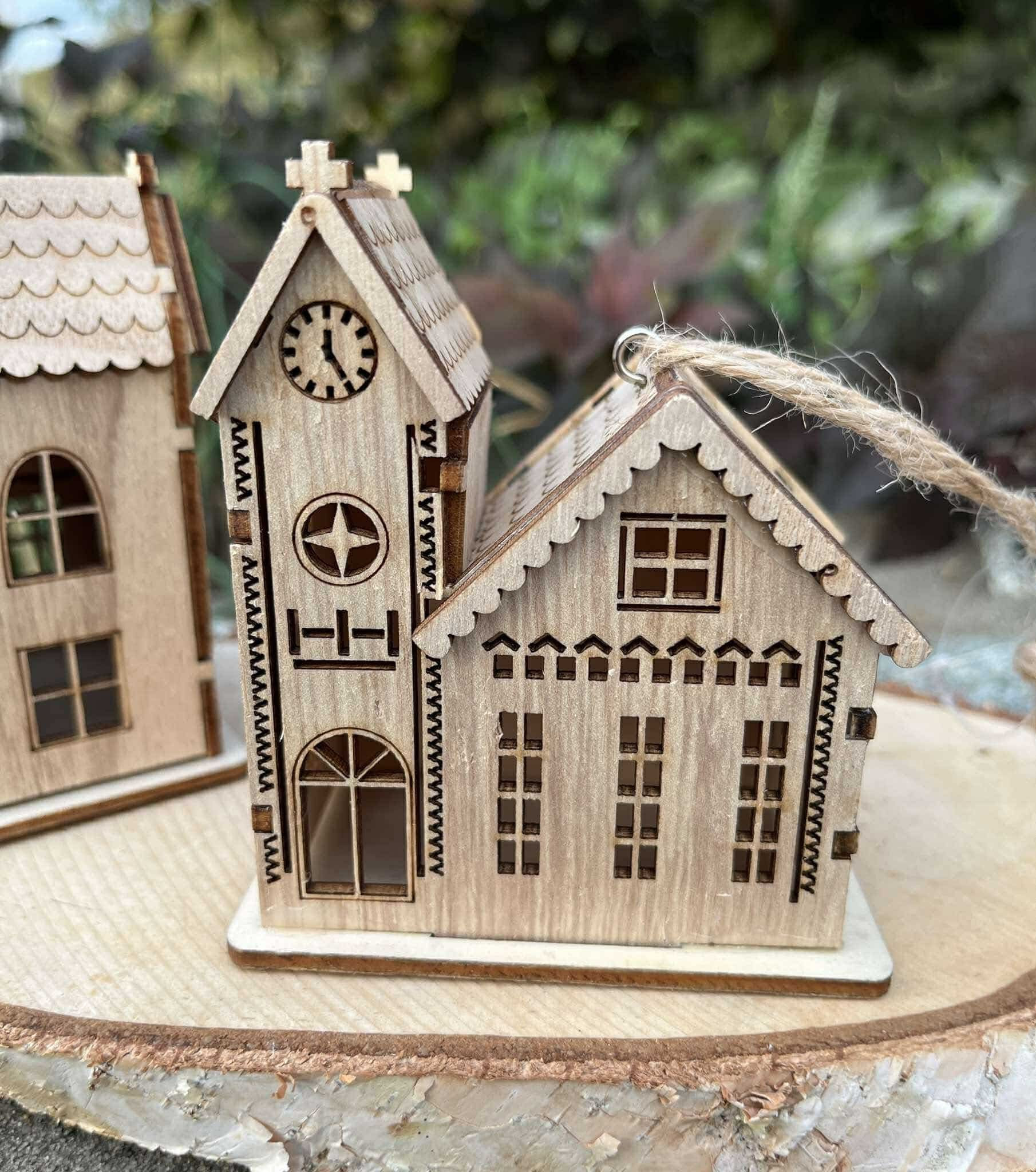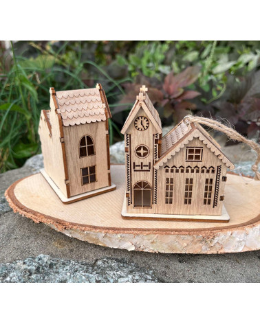 Drevený kostolík vhodný na aranžovanie alebo na zavesenie.