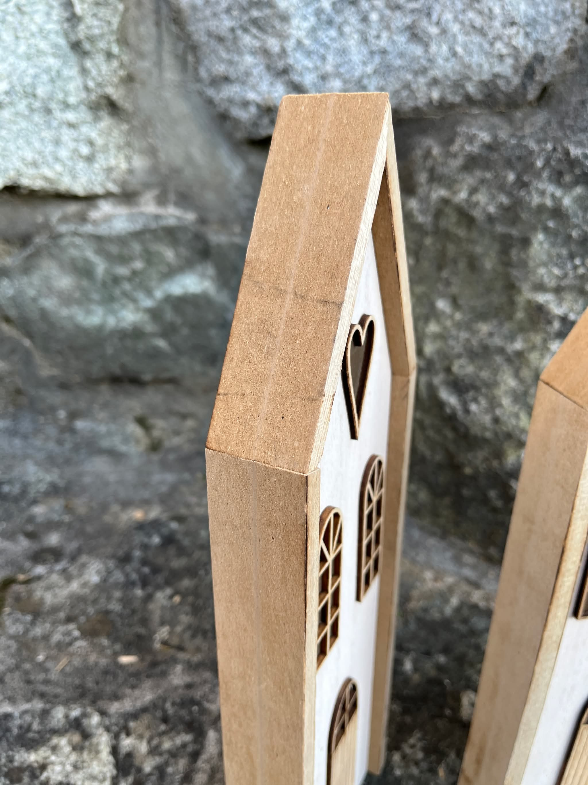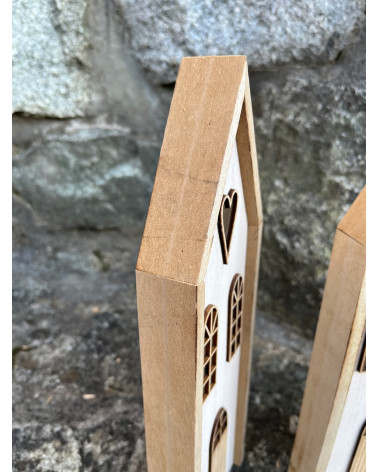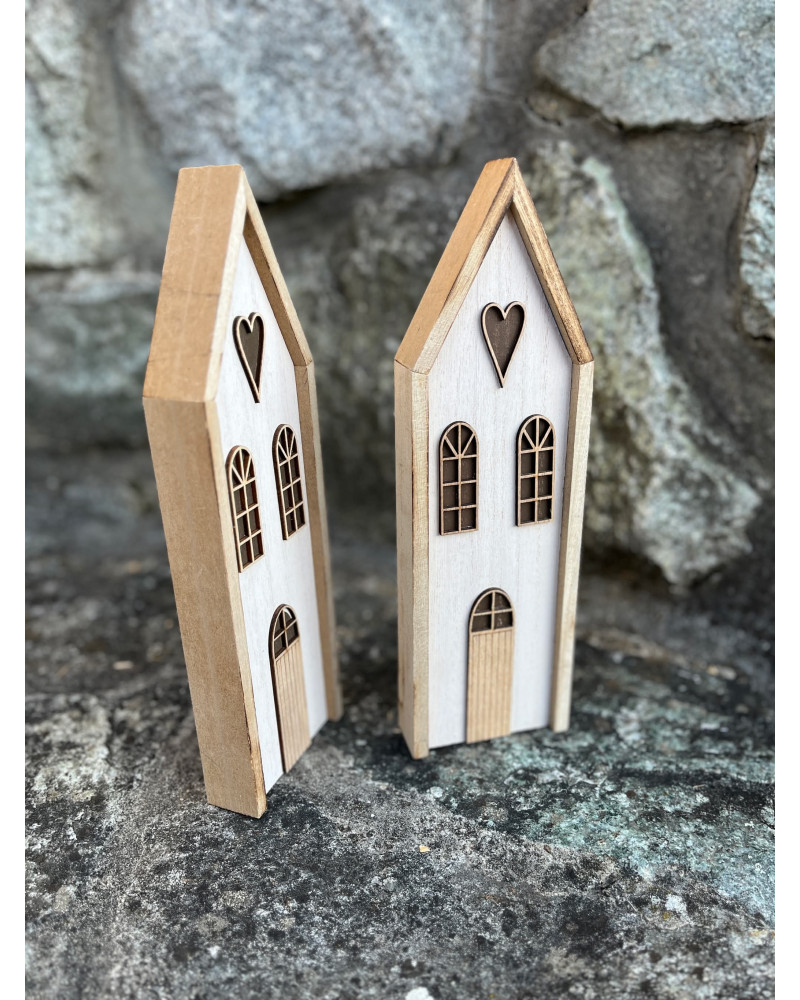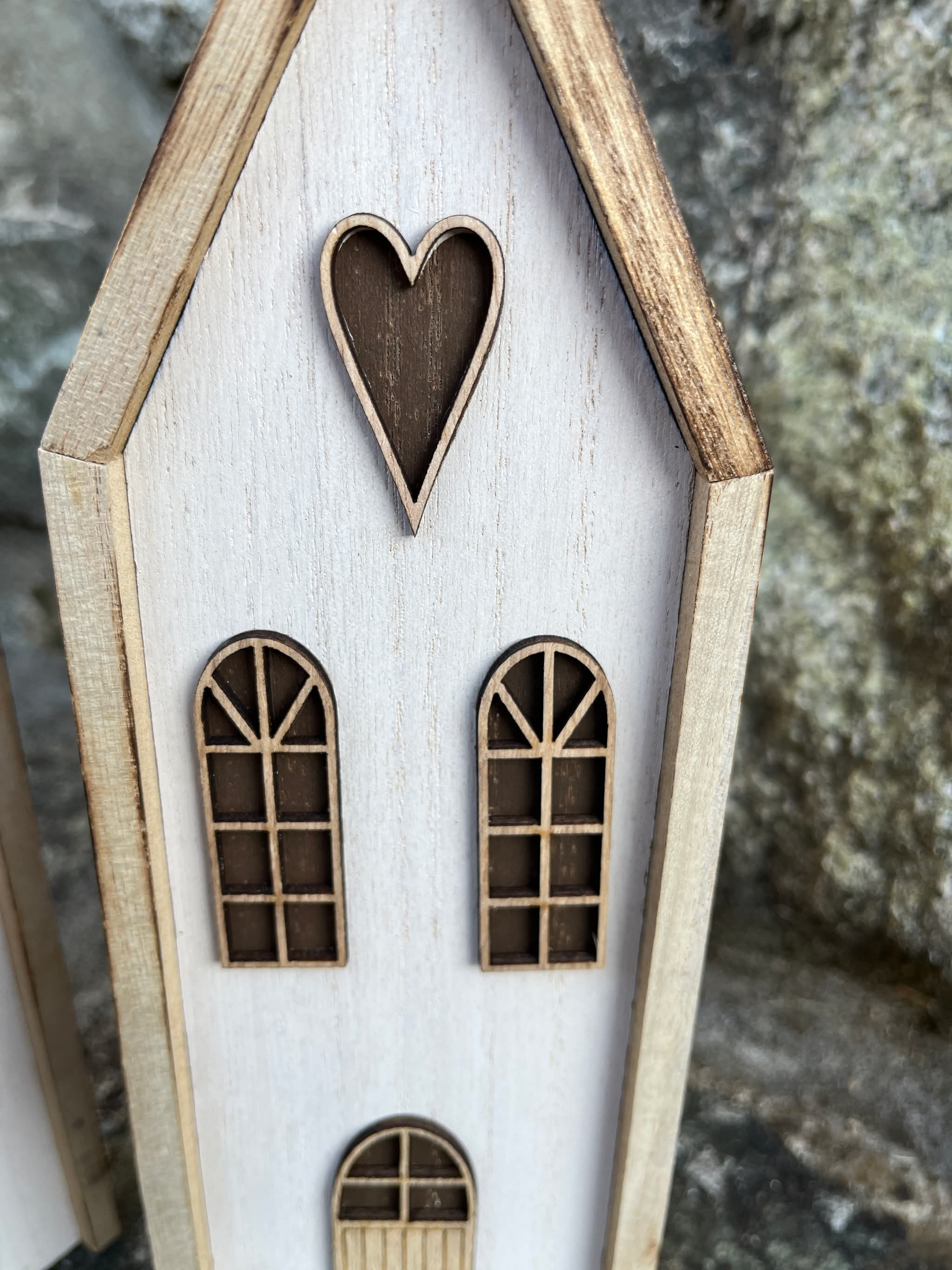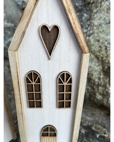 Drevený domček v jemne béžovej farbe so srdiečkom vhodný na celoročnú dekoráciu.