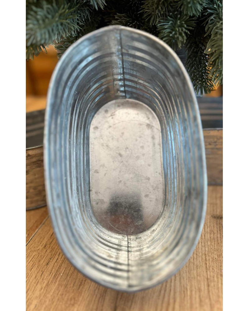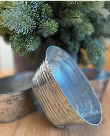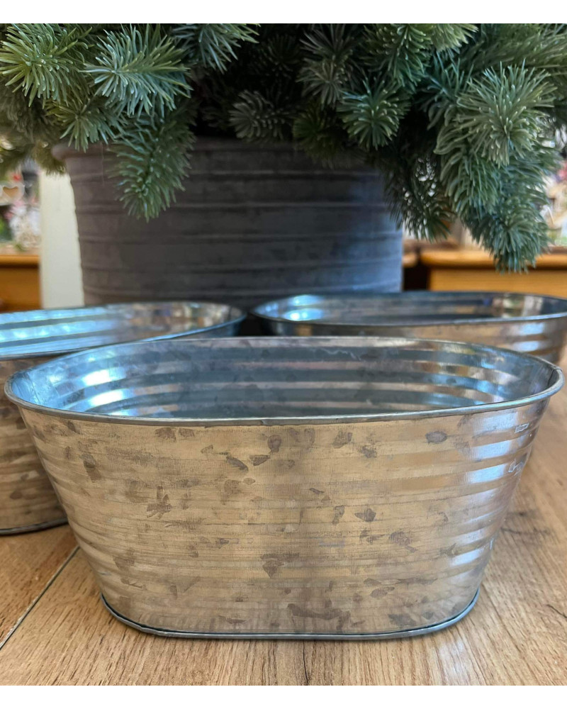 Oválna nádoba v striebornej farbe, ideálna na kvety aj na ďalšie dekorovanie.