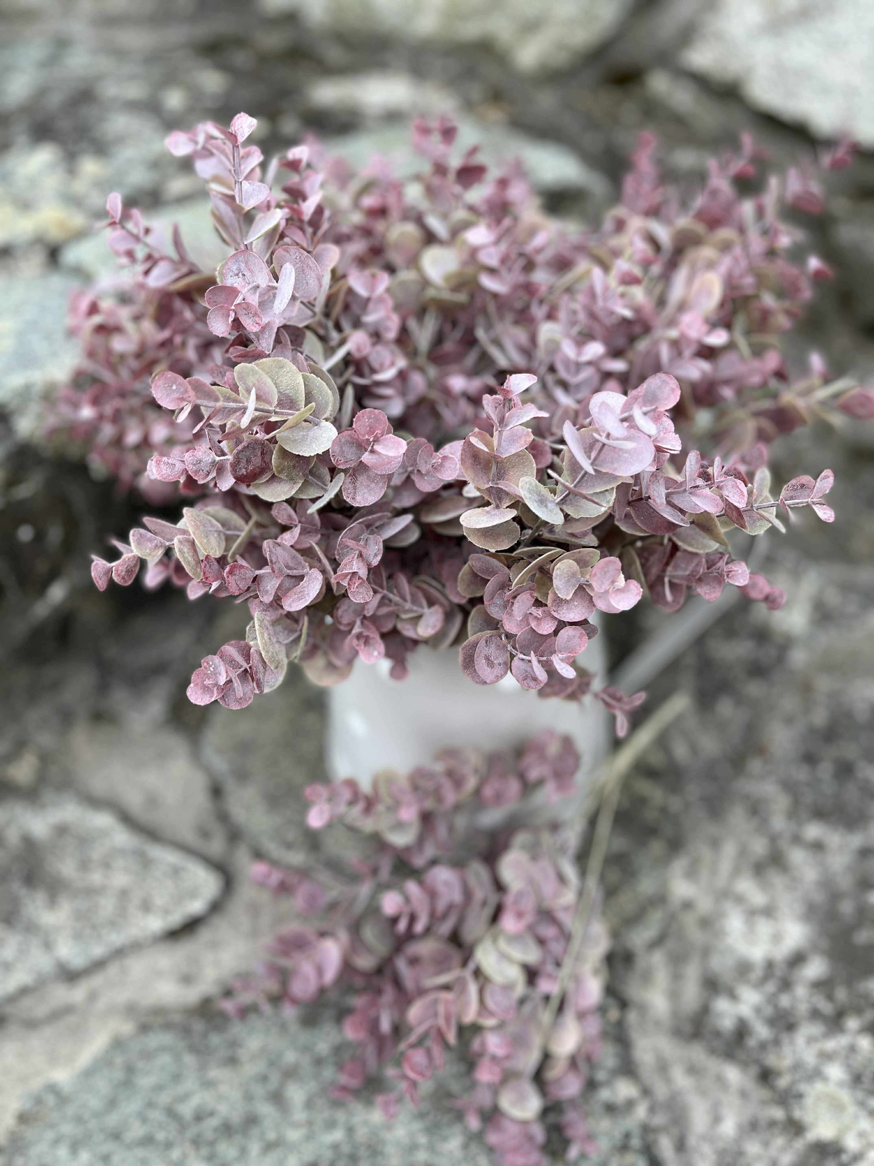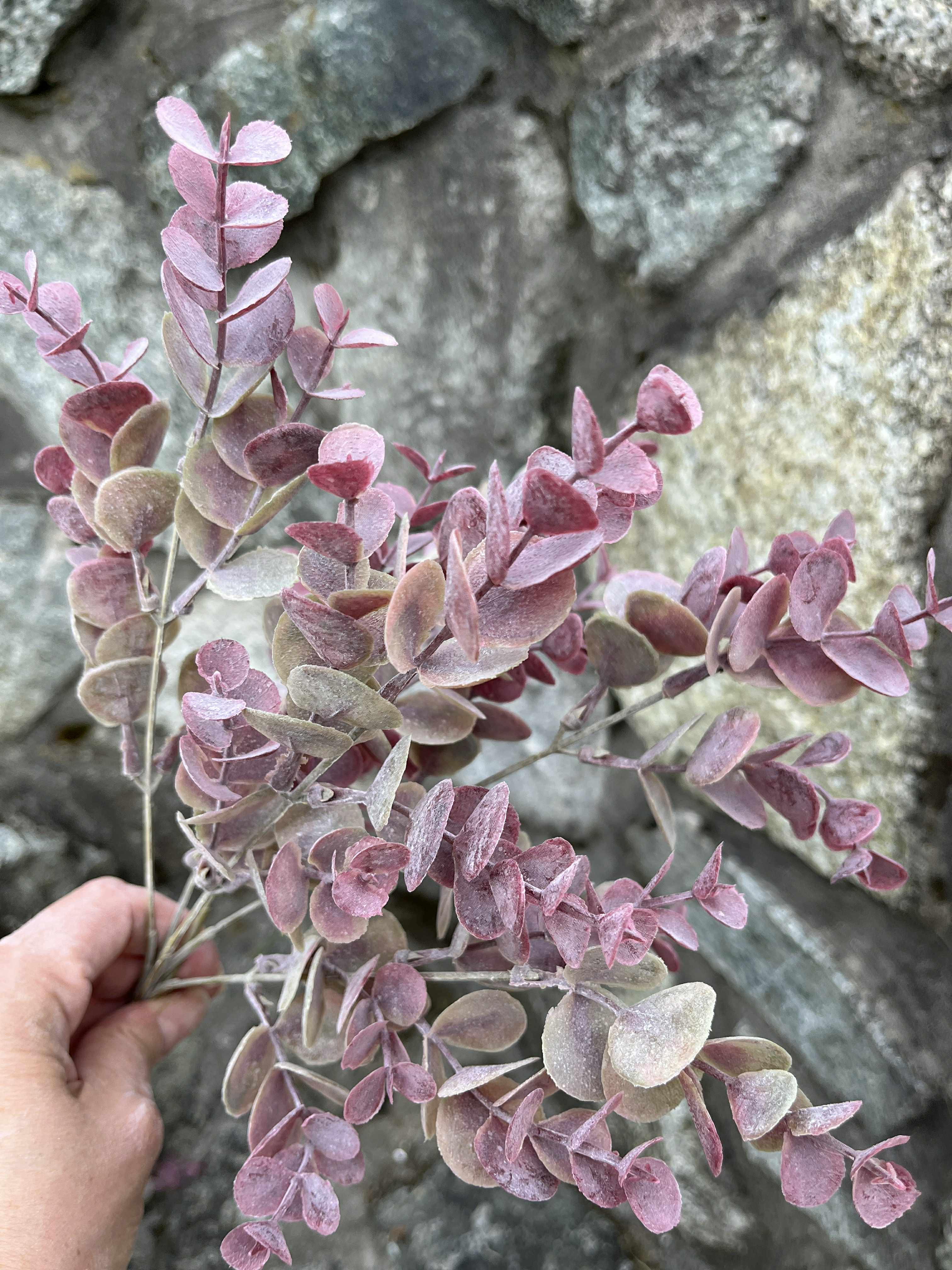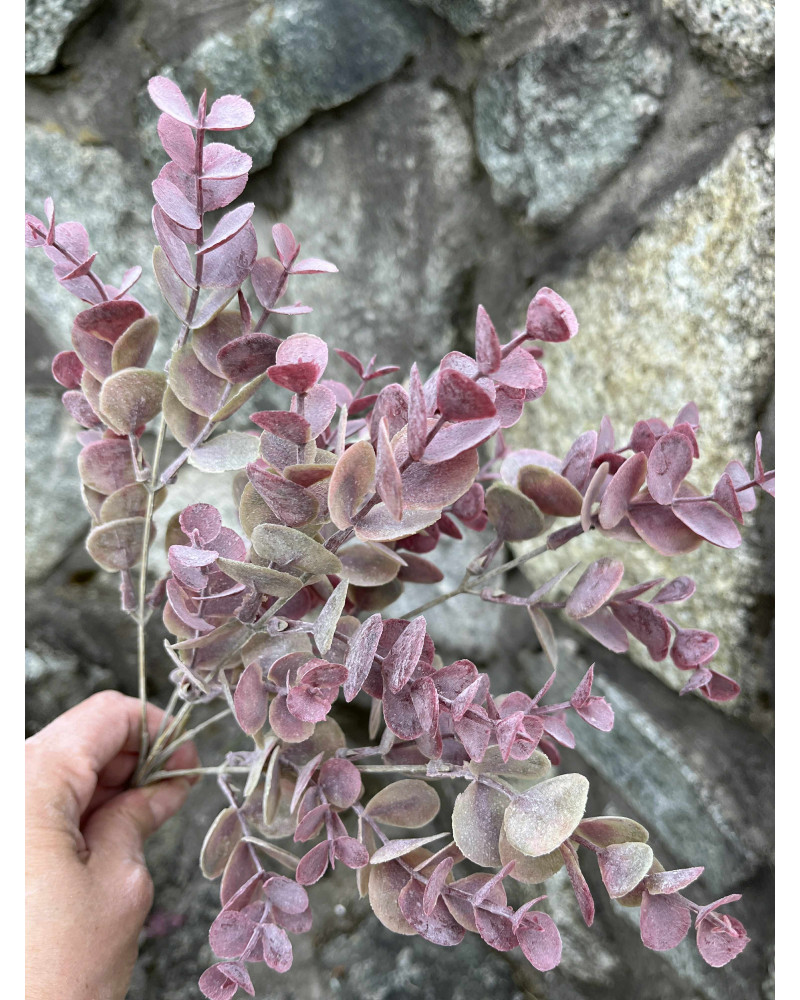 Trs krásneho bordového eukalyptu s nádychom zasneného efektu, nádherný samostatne alebo aj do dekorácií.