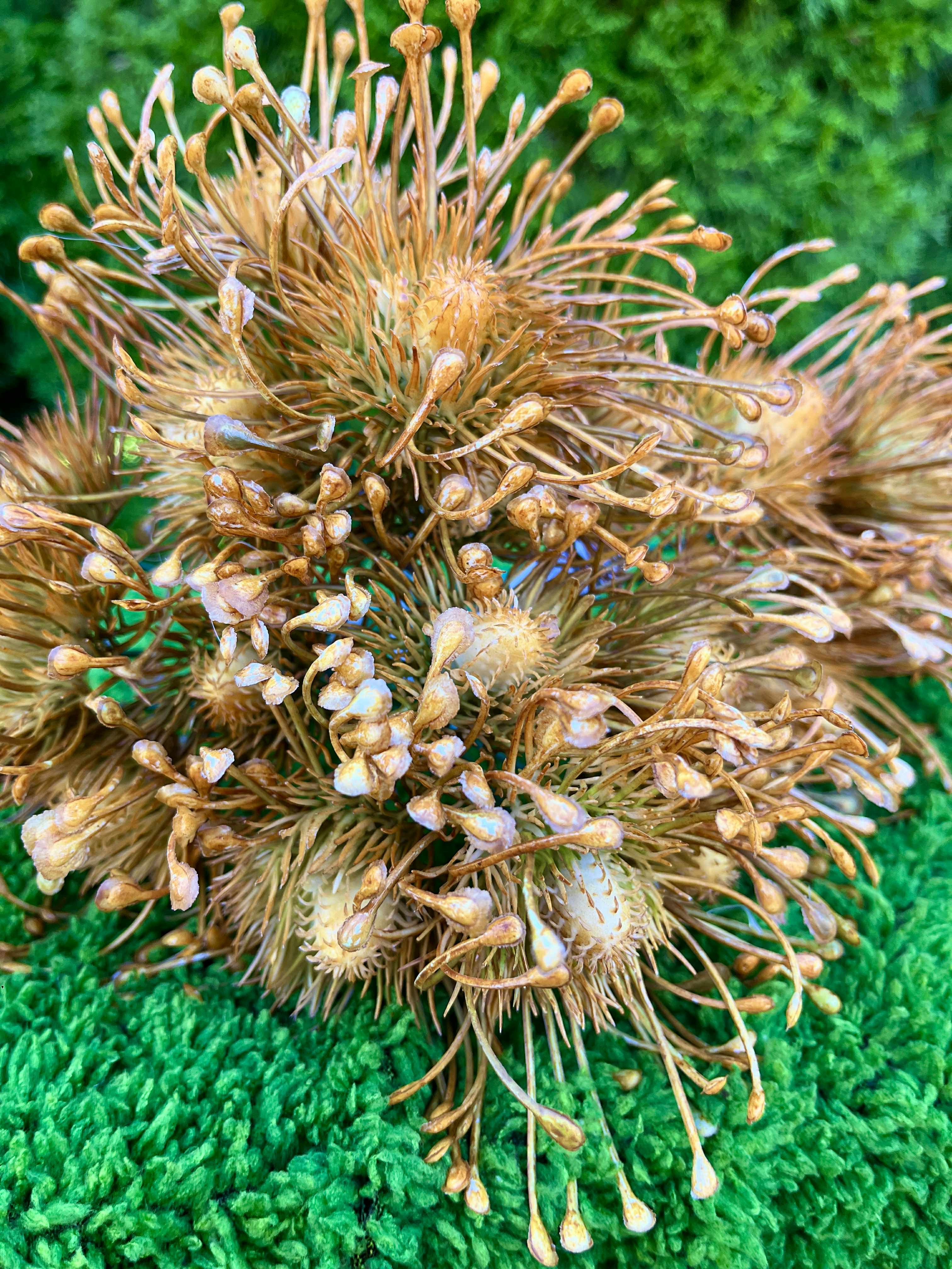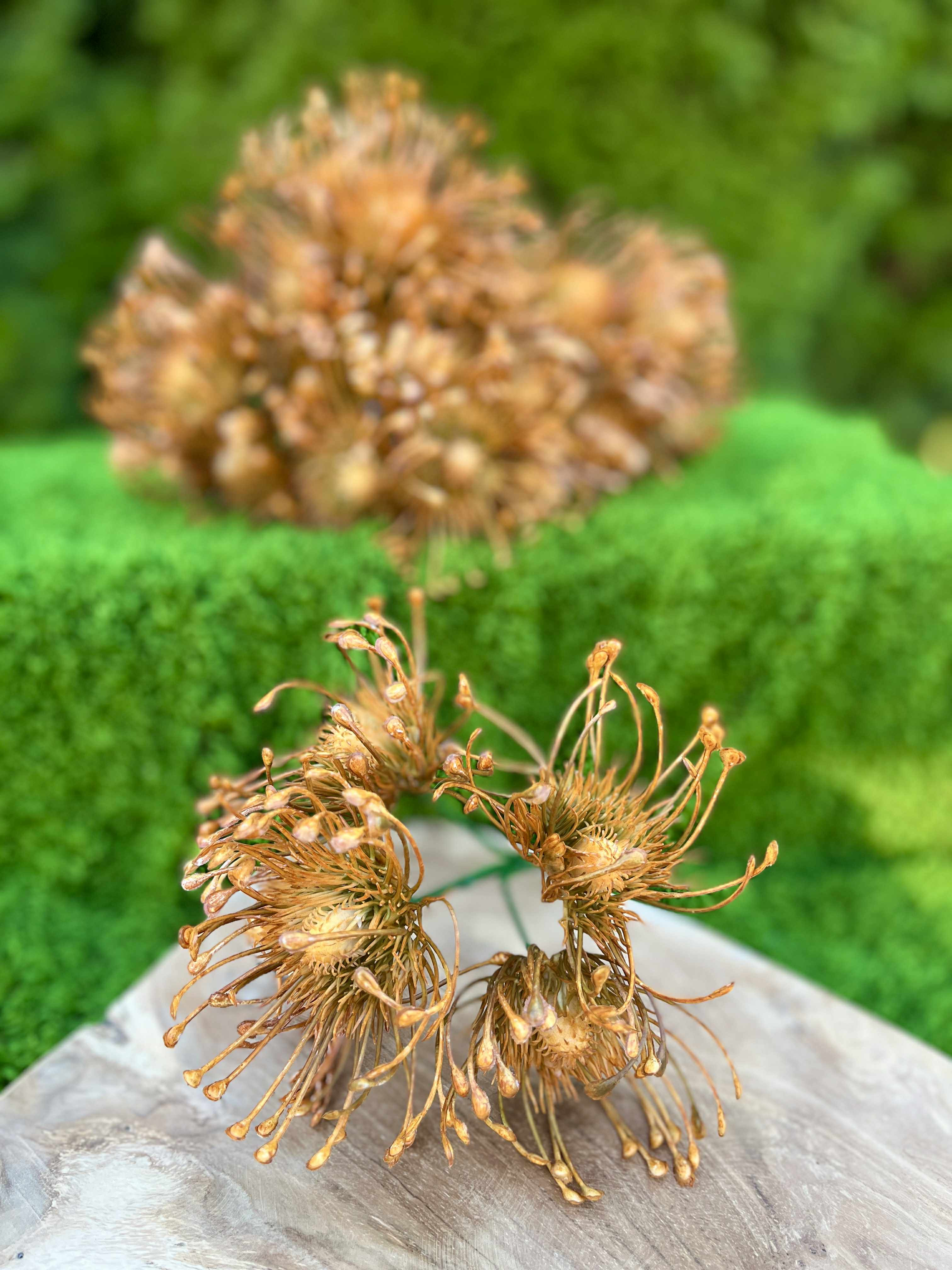 Trs nádherných bodliakov v oranžových odtieňoch. Na trse je 5 bodliakov.