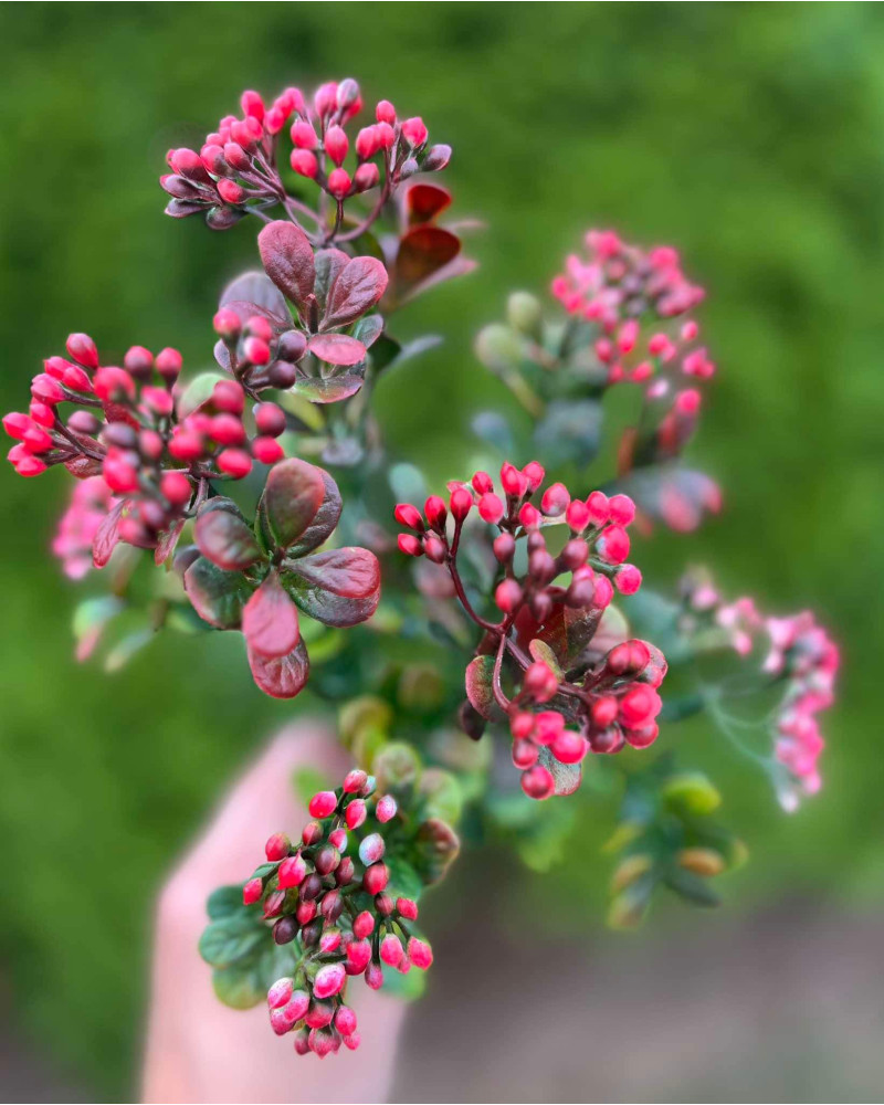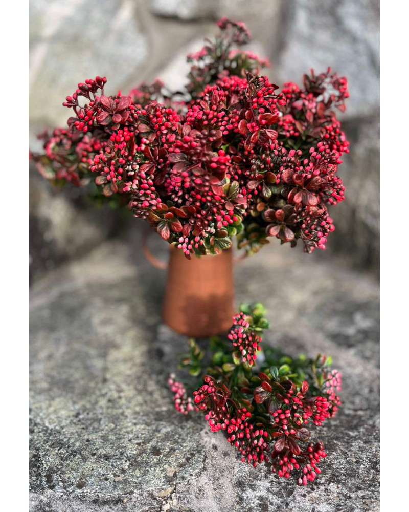 Dekoračné bobule vínovej farby, vďačné aj na ďalšiu tvorbu.