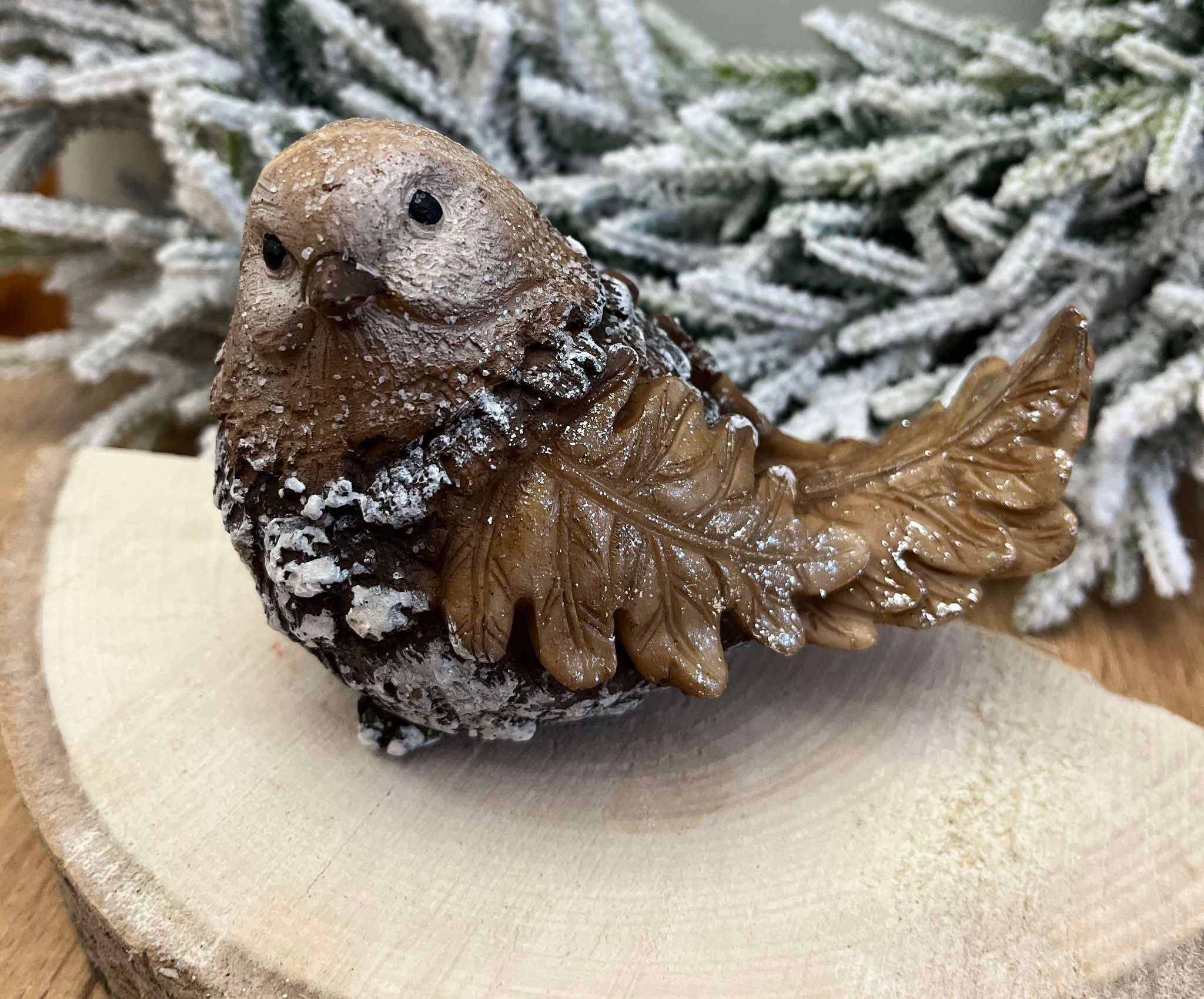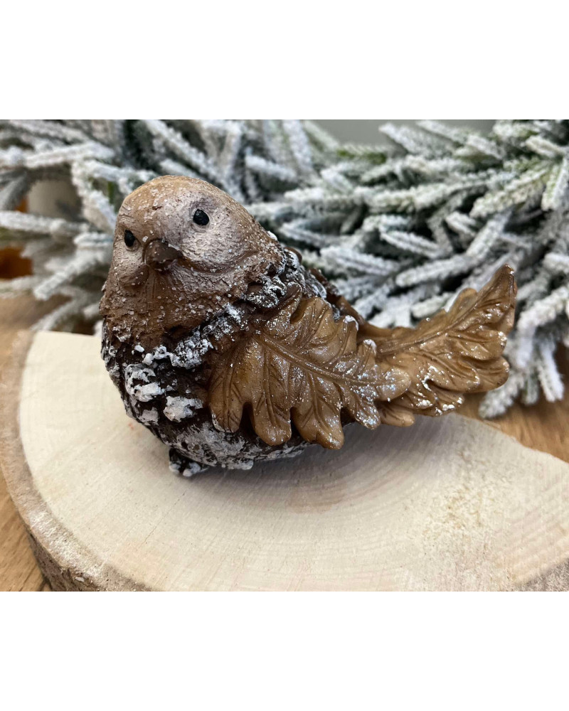 Vtáčik v hnedej farbe s mrazivým efektom.